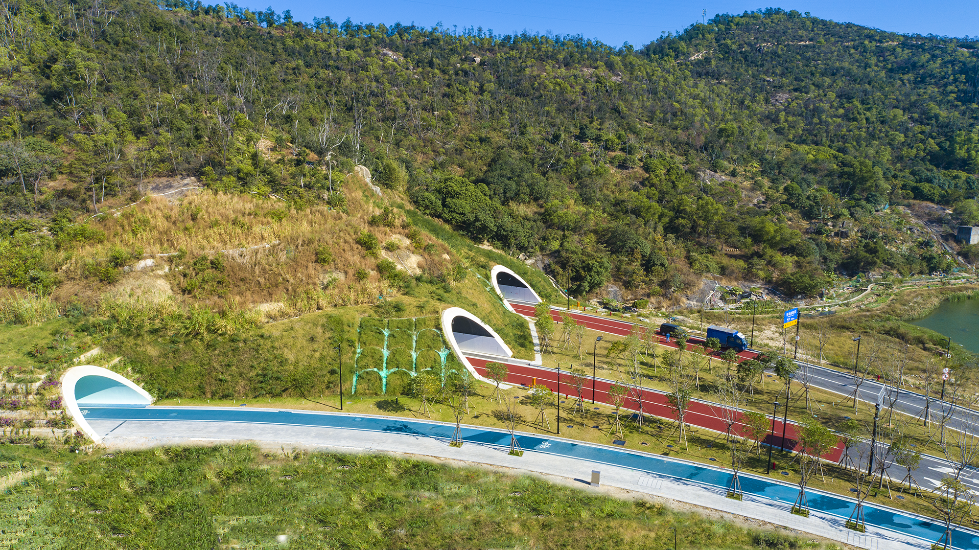 天羽道隧道位于橫琴粵澳深度合作區(qū),穿越小橫琴山,北起環(huán)島北路,南至風(fēng)吹羅帶路,由兩條雙車道車行隧道和一條人非混行隧道組成。天羽道隧道快速連接環(huán)島北路和港澳大道,打通了小橫琴山南北兩側(cè)的交通網(wǎng)絡(luò),極大提升了國(guó)際居住區(qū)、天沐河區(qū)域與環(huán)島北路片區(qū)的交通聯(lián)系。