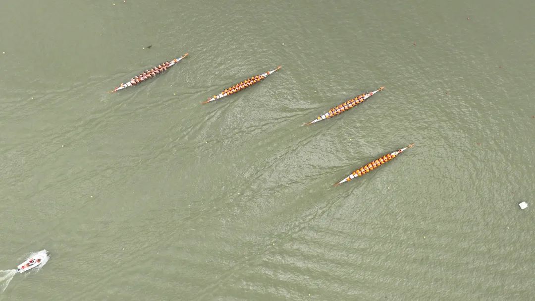 云旗獵獵,鑼鼓頻催。賽場上,在富有節(jié)奏的鼓聲下,整齊劃一的動作,奮力揮槳、劈波斬浪,河面上演著“速度與激情”。