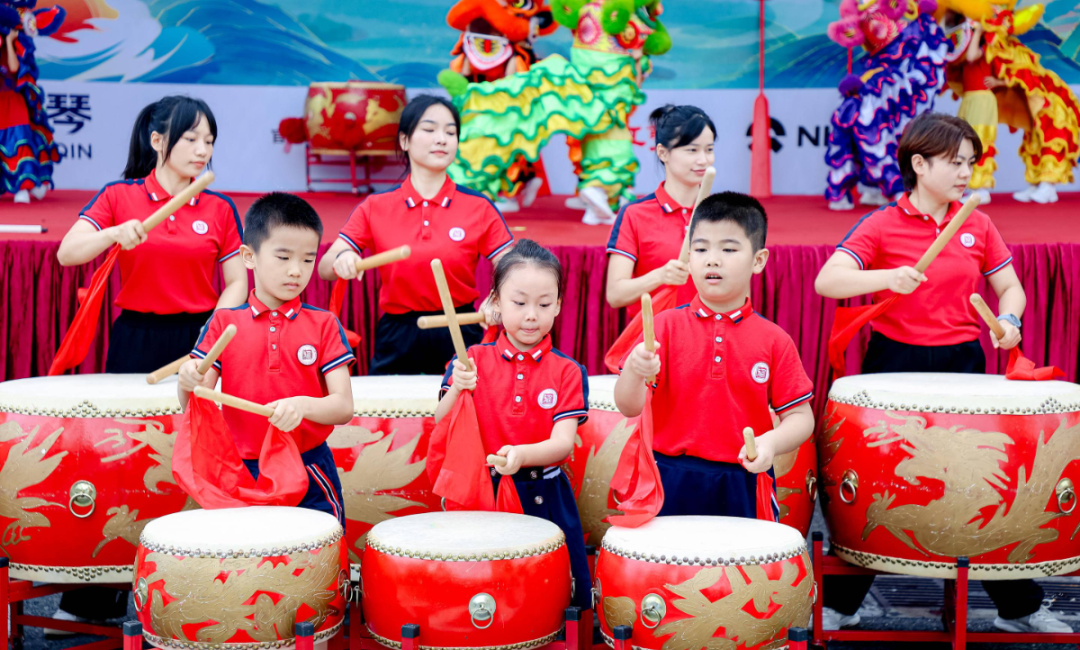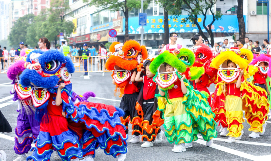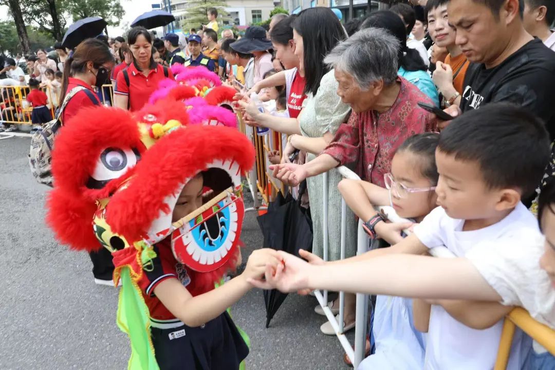 《群獅共舞》《輪滑龍》《賽龍奪錦》《幼兒萌獅》等斗門傳統(tǒng)民俗文化,以及管樂團(tuán)合奏《迎賓曲》《金龍奪標(biāo)》、舞蹈《龍騰九洲》、川劇變臉等富有濃厚非遺特色的文體節(jié)目在岸上的舞臺穿插上演。
