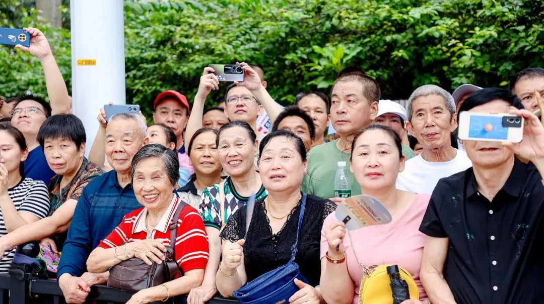 “我每年都和爸爸媽媽一起來看龍舟賽,現(xiàn)場的氛圍太震撼了!作為斗門人,我感到非常開心和自豪。”斗門小觀眾彥宏開心地說。與此同時,不少游客專門從外地趕來觀賞這場“水上競技盛宴”。在眾多觀眾中,來自南屏的歐先生是龍舟賽的“鐵桿粉絲”,盡管的腿部受傷,他也要雙手拄著拐杖,全程站著關(guān)注觀賽。